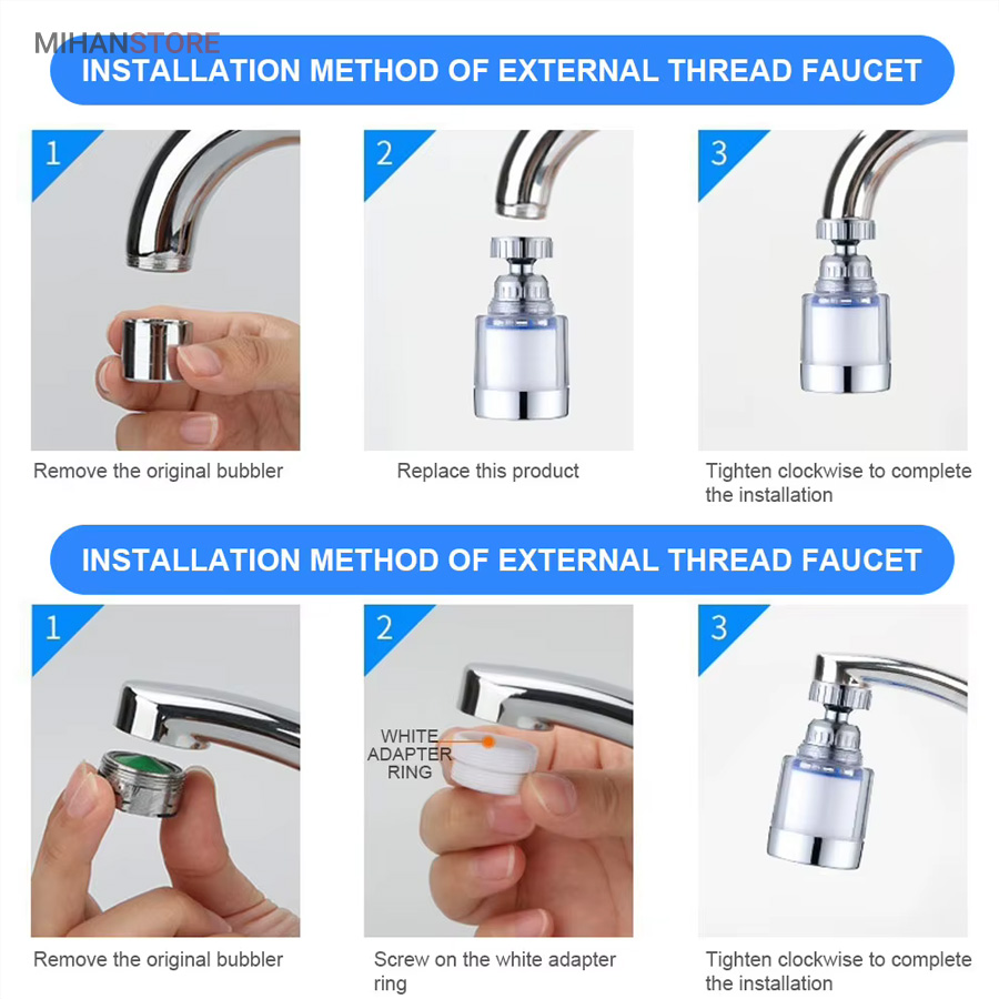 چرخش ۳۶۰ درجه: طراحی چرخان و انعطاف‌پذیر برای دسترسی بهتر به زوایای سینک، شستشوی راحت‌تر دست و صورت.