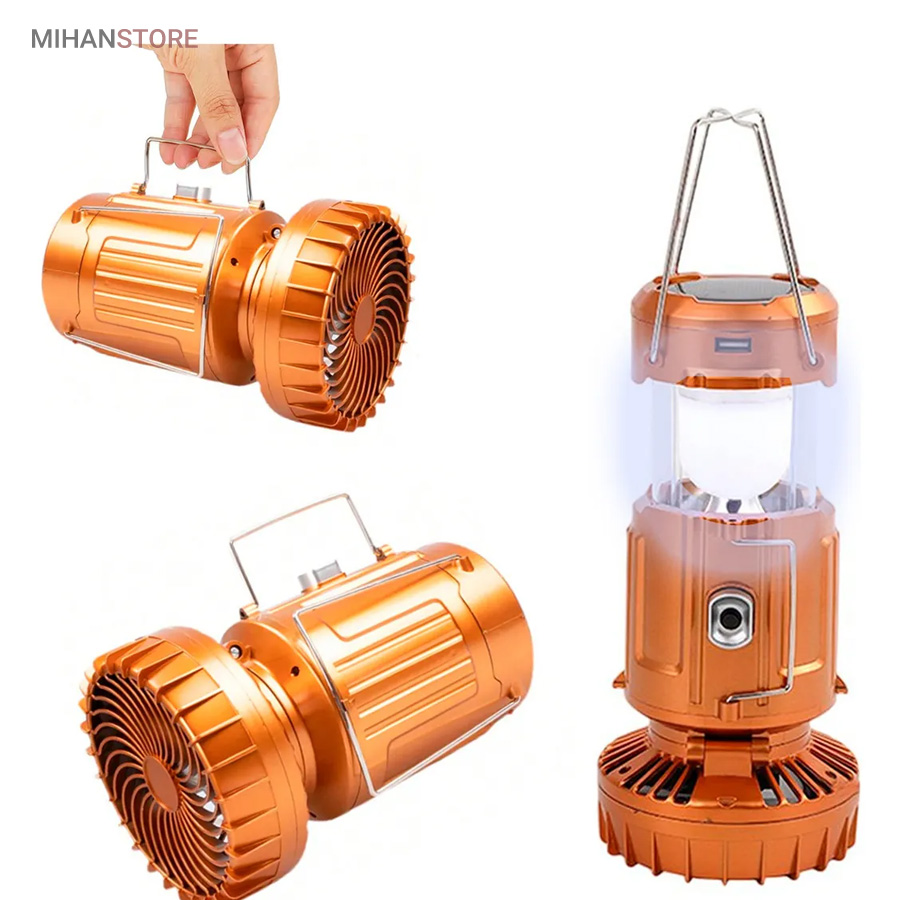 چراغ کمپینگ خورشیدی دارای پنکه و پاوربانک محصولی ساده درعین‌حال کاربردی است که می‌تواند در زمان سفر یا در شرایط اضطراری در شهر مورد استفاده قرار گیرد. در قسمت بالایی این فانوس، دو دسته‌ی فلزی قرار دارد؛ به همین دلیل می‌توان آن را داخل چادر یا هر سطح برجسته‌ای آویزان کرد و از نور آن بهره برد. چراغ کمپینگ و پاوربانک خورشیدی چندکاره همراه خوبی برای سفر به طبیعت، کوه‌نوردی و پیاده‌روی در هنگام شب هستند. گاهی ما به مکانی سفر می‌کنیم که نور کافی در آن وجود ندارد؛ در این صورت، داشتن یک لامپ فانوسی بسیار ضروری به نظر می‌رسد. همچنین از لامپ آن به‌صورت کشویی استفاده خواهید کرد و در صورت نیاز می‌توانید آن را باز کرده، به‌راحتی از روشنایی این لامپ فانوسی بهره‌مند شده و محیط پیرامون خود را روشن کنید. چراغ کمپینگ و پاوربانک خورشیدی چندکاره انتخابی خوب و باکیفیت برای داشتن سفری خوش است که می‌توانید از آن برای روشن‌کردن چادر، اتومبیل یا هر محیط تاریک دیگری استفاده کنید.