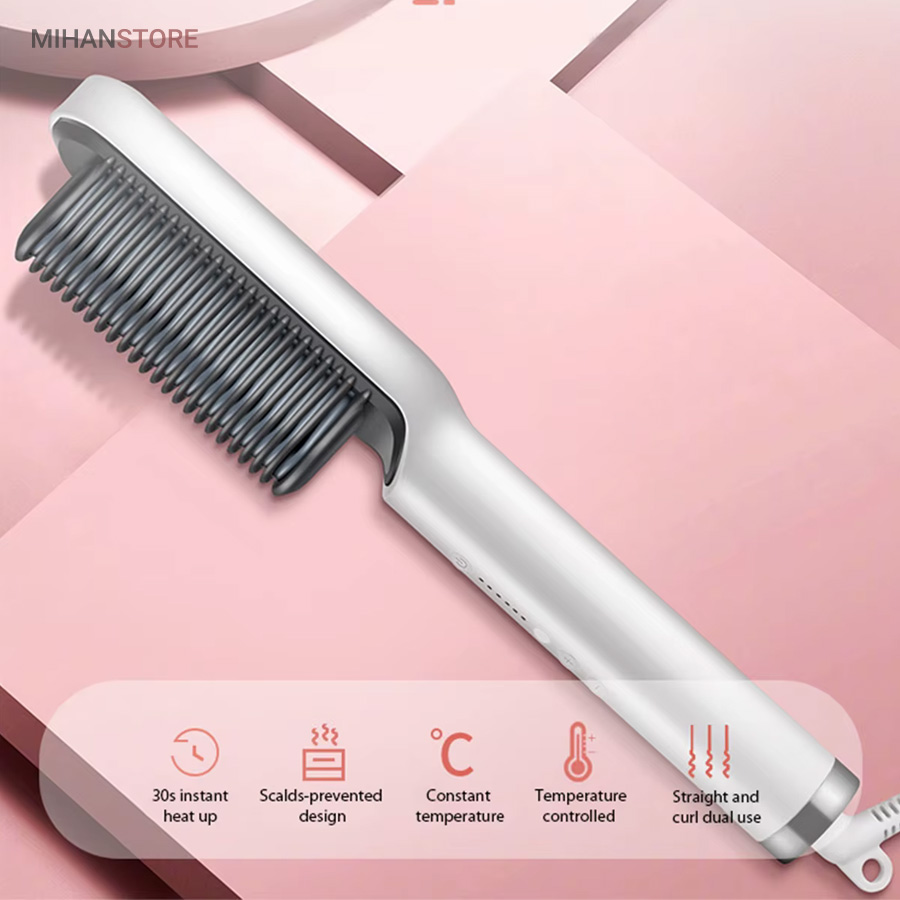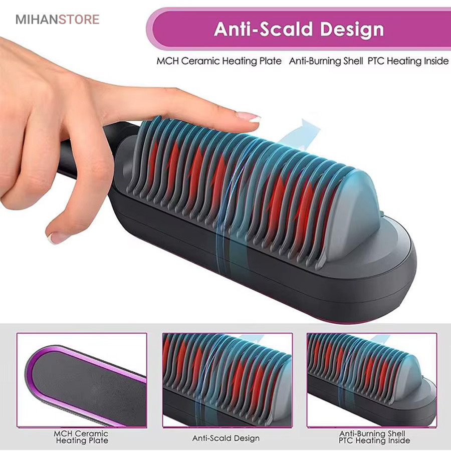 هنگامی که شما تصمیم به استفاده از برس حرارتی گرفته اید بهتر است بدانید که چندین مزایای مختلف را شامل شده اید. مانند: استفاده ی راحت و آسان، وقت گیری کمتر و صافی مو در کوتاه ترین زمان ممکن، صاف شدن مو بی آنکه مو وز کند، کاربرد های متفاوت، حمل آسان و از همه ی این موارد مهم تر، آسیب رسانی کمتر به مو!یکی از بهترین کارکرد های برس حرارتی صاف کننده مو STRAIGHT COMB حداقل آسیبی است که به مو می رساند چرا که مانند برس تنها روی موها کشیده می شود و حرارت درست و صحیحی به موها می دهد که باعث سوختن و آسیب رساندن به مو نخواهد شد.